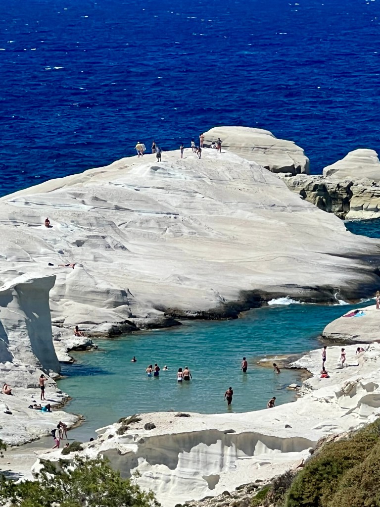 While we have only hosted 2 people thus far, we have high hopes for achieving these goals – though weather will certainly play a big role in this. The summer wind events in Greece known as the Meltemi have been causing a few disruptions to the schedule and we must plan to make sure we are where we can receive guests – i.e., near an airport or ferry. In fact, during the most intense Meltemi, even the ferries cancel service. That said, we have had 2 events so far and we arrived in Milos ahead of the first, and we tucked into Folegandros for the second. So far, so good. But back to Milos, where we entered the Cyclades….
