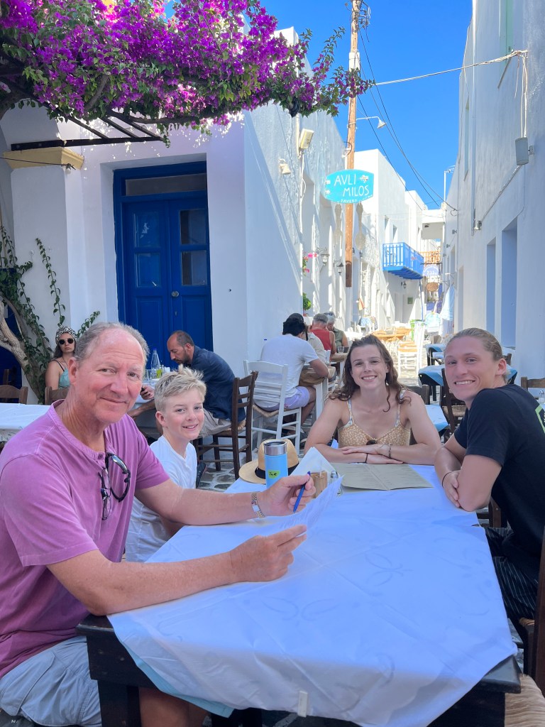 Our first visitors arrived in Athens within a couple of days of our arrival in Milos. We planned this so that they could spend a couple of days acclimating to the time change in Athens and see the Acropolis and anything else they wanted to see, then take a ferry to us in Milos. This worked perfectly as we were then “stuck” in Milos for several days while the Meltemi blew. We had several days of 35 knot winds during which travel would have been in violation of rule number 1 on Gratitude – “Keep the pleasure in pleasure boating”. That said, by the time they arrived, we were rested, ready and had some family time “in the bank” so that our week together was enjoyable.