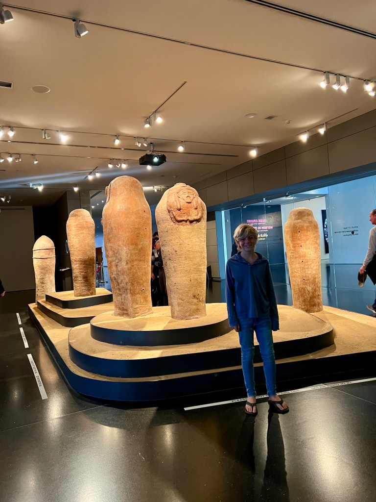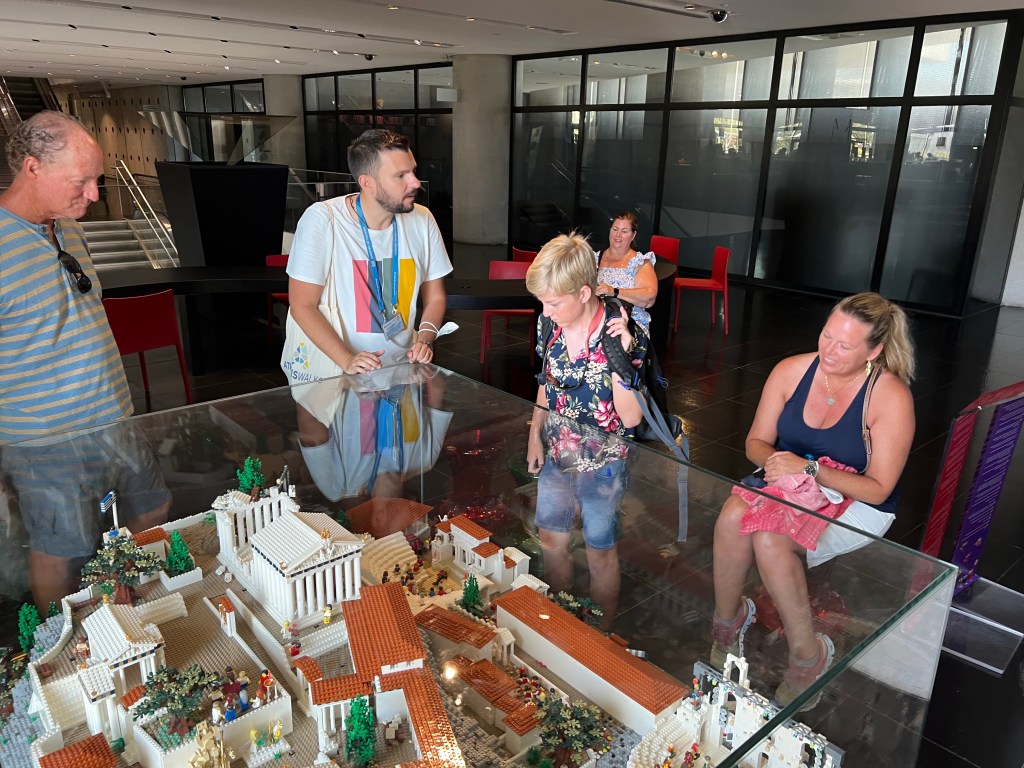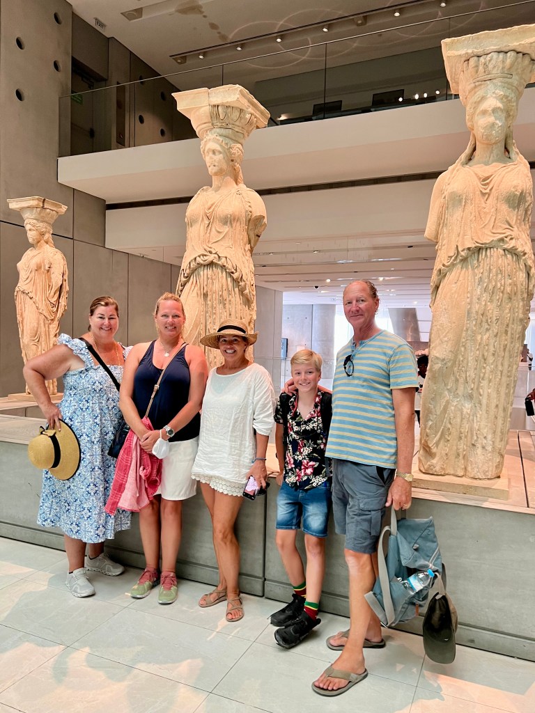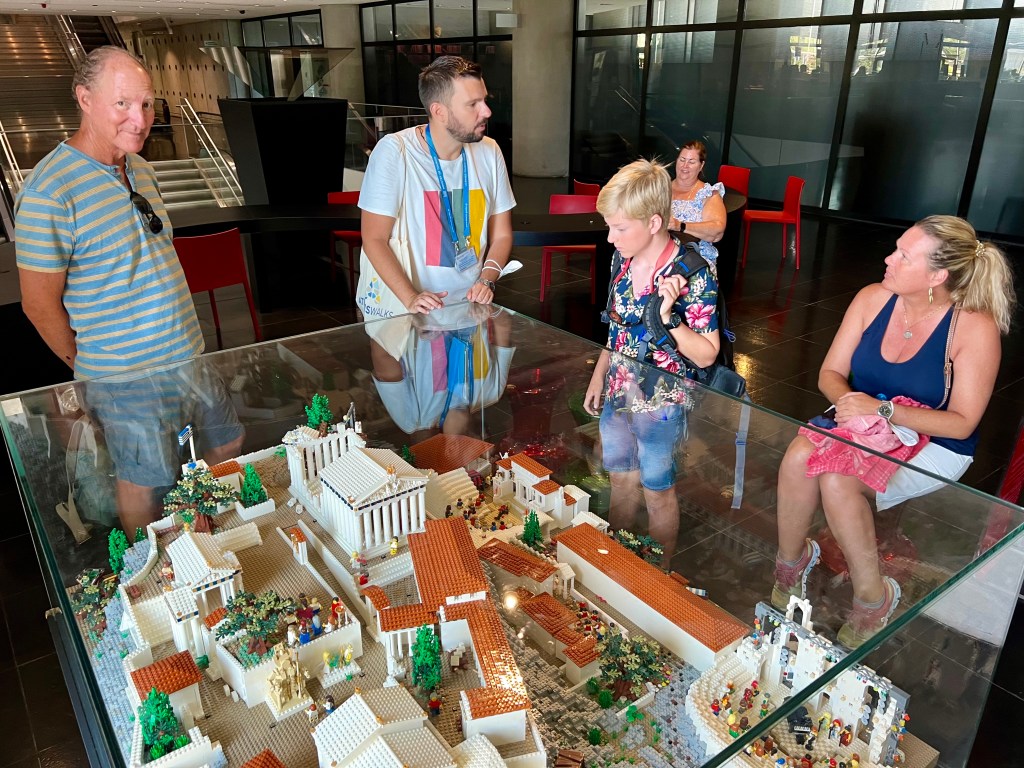 The photos of the original Caryatids above with the lovely Tracy are the original Caryatids in the museum in Athens. They were once where the replicas are displayed on the right at the Acropolis. The center photo with Jack and our guide is a lego reproduction including Lord Elgin chiseling the caryatids from the temple. The lego is a gift donated to the Athens museum from Australia.