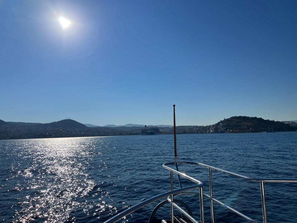 Rounding the peninsula of the Peloponnese, we had opted to head due East, rather than make the turn North heading to Athens. Our primary considerations for the next 6 weeks are the 7 guests arriving in 4 different increments. Since all our family and friends arriving should see, at a minimum, Athens- and most want to see Santorini. Our challenge is that we don’t wish to spend 6 of our precious 12 Greek weeks in these locales, so it has involved a bit of “visitor calculus” to make sure everyone is getting what they want after traveling 5,000 miles to be with us.