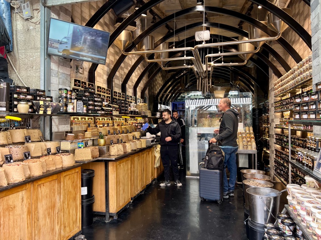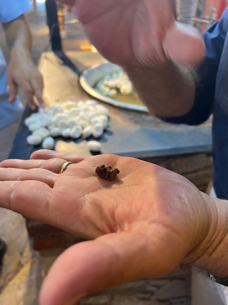 The result of that tie to the past is the most amazing cheese one has ever tasted! The goats, visible in the distance, still meander the hillsides feasting on wild (not cultivated) herbs. They are not penned; they eat what is growing wild and untreated with chemicals. We were not permitted access to the “factory” due to health and safety measures, but we looked in and witnessed just a small room which produced the nicest cheese we have ever sampled. Alec loathes goat cheese but with some prodding decided to try this. The purveyor explained that with no stress hormones and a rich diet of herbs – the goat cheese has none of that weird flavor that we all associate with goat cheese. She was right. Not even the slightest hint of goat cheese in the cheese from goats. Alec LOVED it – we all did.