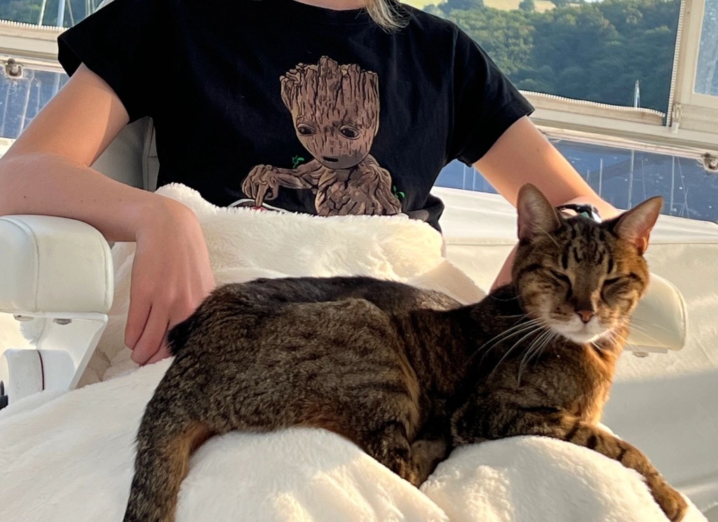 Charming, is the most obvious description when I look out our window, but a peaceful pearl in the midst of controlled chaos is what it feels like to come home to this place. There are 3 basins which comprise the SKD facility. Impeccably maintained, manicured and cared for by a team of the most able specialists in marine accommodation we have ever seen, St. Katharines is a true haven and a worthy stop for any visitor whether on the boat or visiting via hotel. Facilitating this unlikely task, given that there are times when the shoreline of the Thames is a mudflat, is a locking system which permits a stable depth in the marina despite the twice daily rise and fall of 10 meters (roughly 30 feet) of tide water. Watching boats “lock” in and out is itself a tourist attraction and Science lesson. Gratitude has a front row seat for the arrival of new boats which can only happen during the high tide and 1 hour on either side. The staff are as kind as they are efficient and manage all manner of tasks from locking arrivals and departures in and out of the marina, to facilitating black water pump out, as well as the meticulous cleaning and maintenance of shower, laundry and general facilities. Not inexpensive, this is likely the most “pricey” moorage we have paid in Europe, it is less expensive then anything comparable in the US and given its location and quality of accommodation, we feel it is a good value for the money. On a personal note, shortly after our arrival, our eldest, Pratt (nearly 17 year old cat) became ill. Since he was already diagnosed with several maladies which indicated his imminent passing, we felt certain where this was heading. Claire and others in the SKD office helped us with making vet appointments as well as just general kindness when the inevitable happened and we had to let Pratt go. They even found homes for his food and other items on board, and brought us flowers which was way above and beyond and just the type of gesture one appreciates from a neighbor, even a neighbor as short lived as us. Losing Pratt was a terrible blow to the whole Gratitude family. We loved him immensely and he gave us so much. We miss him terribly as we continue to miss his sister who passed away over 2 years ago.