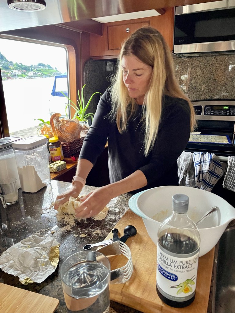 It is always fun to share our “real life” with people who visit us. There is no way of explaining that we are not simply laying on chaise lounges sipping drinks with umbrellas in them. No matter how we try to convey that this lifestyle, though wonderful and enriching, is challenging in ways we can’t possibly explain, we know that when visitors come, they have had their own visions of what their vacation will look like and we also know, that unless they have been here more than once, it won’t look anything like what they envisioned. Even though Kelly has visited us before, she hasn’t had the chance to see us while cruising and moving from place to place. So it was fun for her to experience what our real life is like. All the moving parts that must fall into place for us to move from one island to another. All the weather planning, all the logistical planning, and even the grocery shopping. On this trip we purchased groceries since we had a rental car, and it was simple to get the groceries to the anchorage, but from there we had to convey the groceries to the dinghy whilst climbing over rocks in winds exceeding 40 knots, at night. The dinghy was tied to rocks and stern anchored but had to be pulled in and the groceries loaded. From there we traveled to Gratitude and in pitching seas, loaded us and our precious cargo aboard. So, you can see that we may not have a lot of ice cream on board, or beer, or even wine. We don’t carry much more than that which we need because carrying only what we need is as much as 3 people can manage. It is truly fun for us to share this part of cruising because this is what real life is for us. We try to make sure we do the cleaning and preparing before guests arrive so that their time with us isn’t drudgery but sharing some of the realistic aspects of what we do is authentic and fun as well.