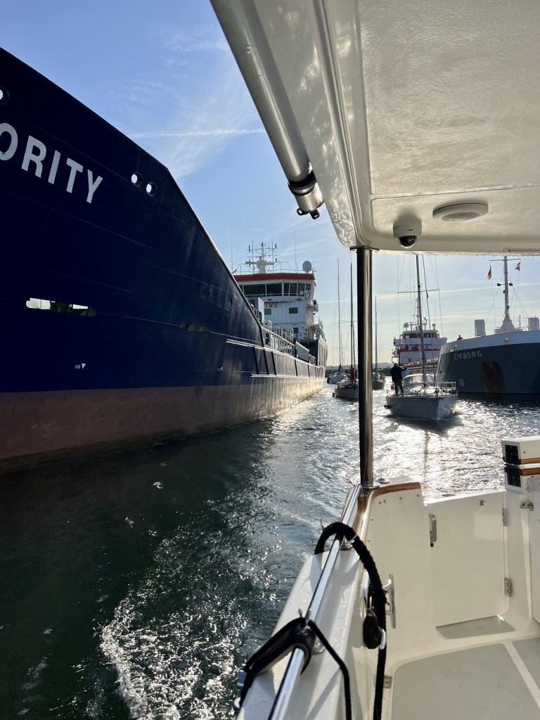 We began our adventure in Germany after arriving at the entrance to the Kiel canal. Scotland and the Caledonia Canal initiated our appreciation of canals, and we loved the Kiel for the same reasons. The 98-kilometer freshwater canal has been here since 1898 and, through it transit, on average, 32000 ships yearly. The canal eliminates some 250 miles of potentially treacherous seas to the North of Jutland in the North Sea for ships heading into or out of the Baltic. All along the route one can see clever and resourceful ways in which the transit authorities have accommodated the communities that they have bisected to create this wonder. There are ferry’s, bridges and even a cable car suspended over the canal. We encountered every size and shape of vessel and despite the foggy conditions, we had a wonderful passage over 2 days.