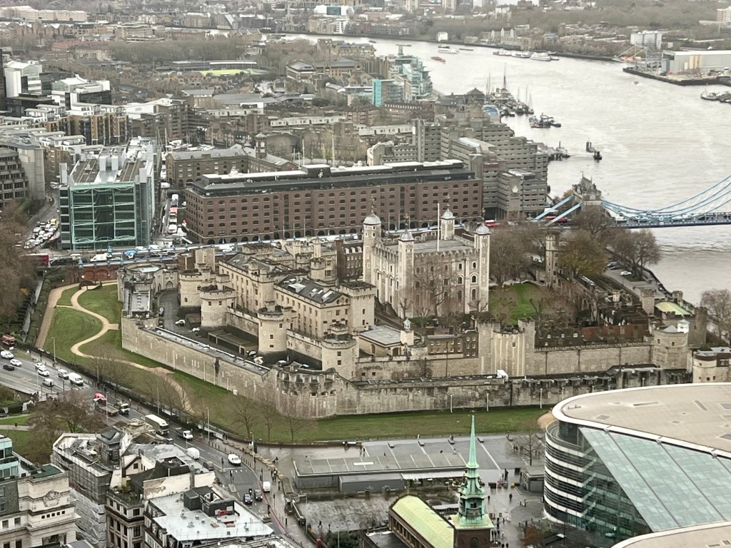 My favorite old building would have to be the amazing Tower of London. The original structure, the White Castle, was built by William the Conqueror in the 1080s. One can walk around the outer structure and read about the history without even hiring a guide but, of course, the guided tours are amazing. Without even paying the price of admission, one can walk around and appreciate the history and architecture. While the White Castle can be hard to find walking the perimeter, it is clearly visible from these photos taken from the Sky Garden. Also, it is clearly visible from either the Tower Bridge mid-point or from the London Bridge. Viewed from a distance, the White Castle is clearly visible. A word about the Tower… If you are visiting London and looking for a special treat that few ever enjoy, you can book tickets several months in advance to see the nightly closing of the tower. The Beefeaters have an entire ceremony of the keys whereby they lock the gates of the Tower of London. This ceremony is closed to the public except for advance ticket purchase and even requires a dress code. A simple google search will reveal the details. Also interesting is having dinner in the tower, which my mother and stepfather once did while traveling here on Tauk. Mere mortals such as I could only imagine what a privilege that would be.