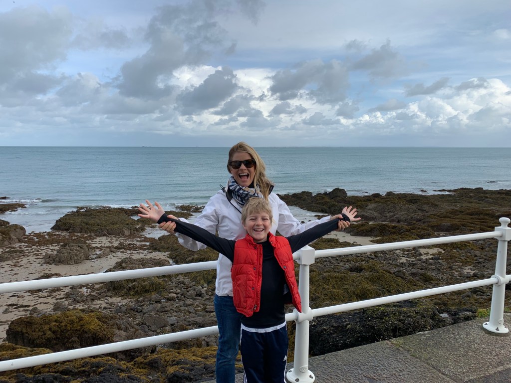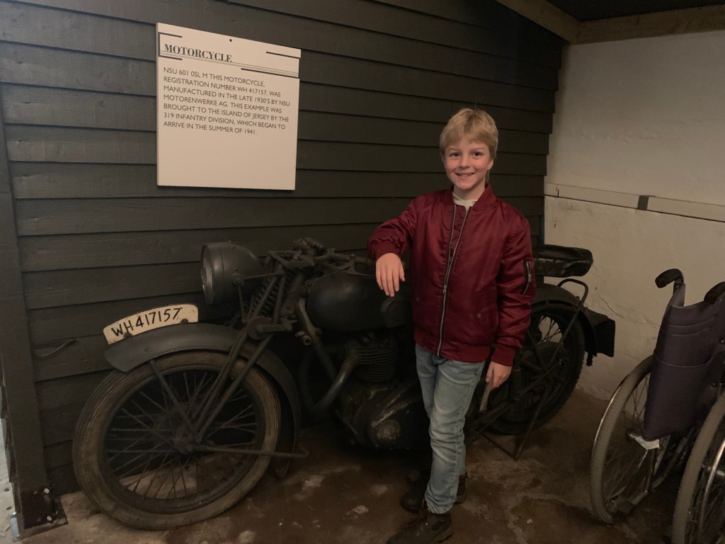 We spent the better part of a day crawling all over the Elizabeth Castle, a tidal island built in the 1500’s. Because it is tidal we were able to walk to the castle but needed to take a boat/bus back. We got the side benefit of a little science lesson on the ocean floor walk to the castle. More examples of this amazing tide are below – Jack is pretending to hold his breath and swimming on land well below the high water mark on the rocks to his right. We also enjoyed an island tour, and a trip to the Jersey War Tunnels. Purported to be a hospital but more likely an underground fortification for the German V2 bomb, this series of tunnels underground were built by Eastern European slaves and local workers during the 2nd World War during German occupation of this island. In fact, the island has paid tribute to that time in her history through so many tourist stops including the Tapestry below commemorated by the artistic and beautiful needlework of women who made panels depicting many facets of life under occupation. This can be found at the Maritime Museum. Here only a week, we have many spots left to explore on this next week coming up and with a wonderful bus system we should be able to see it all.