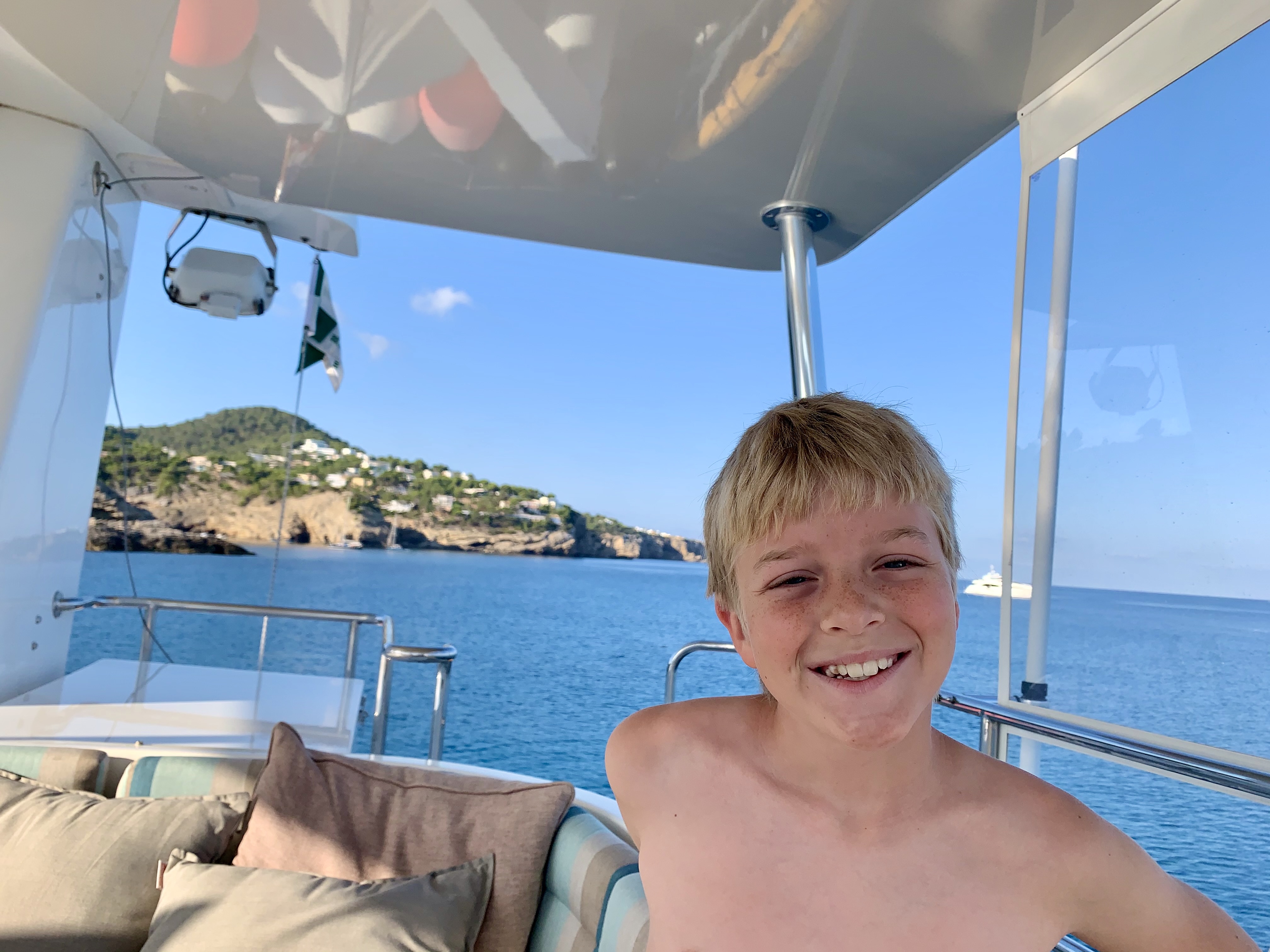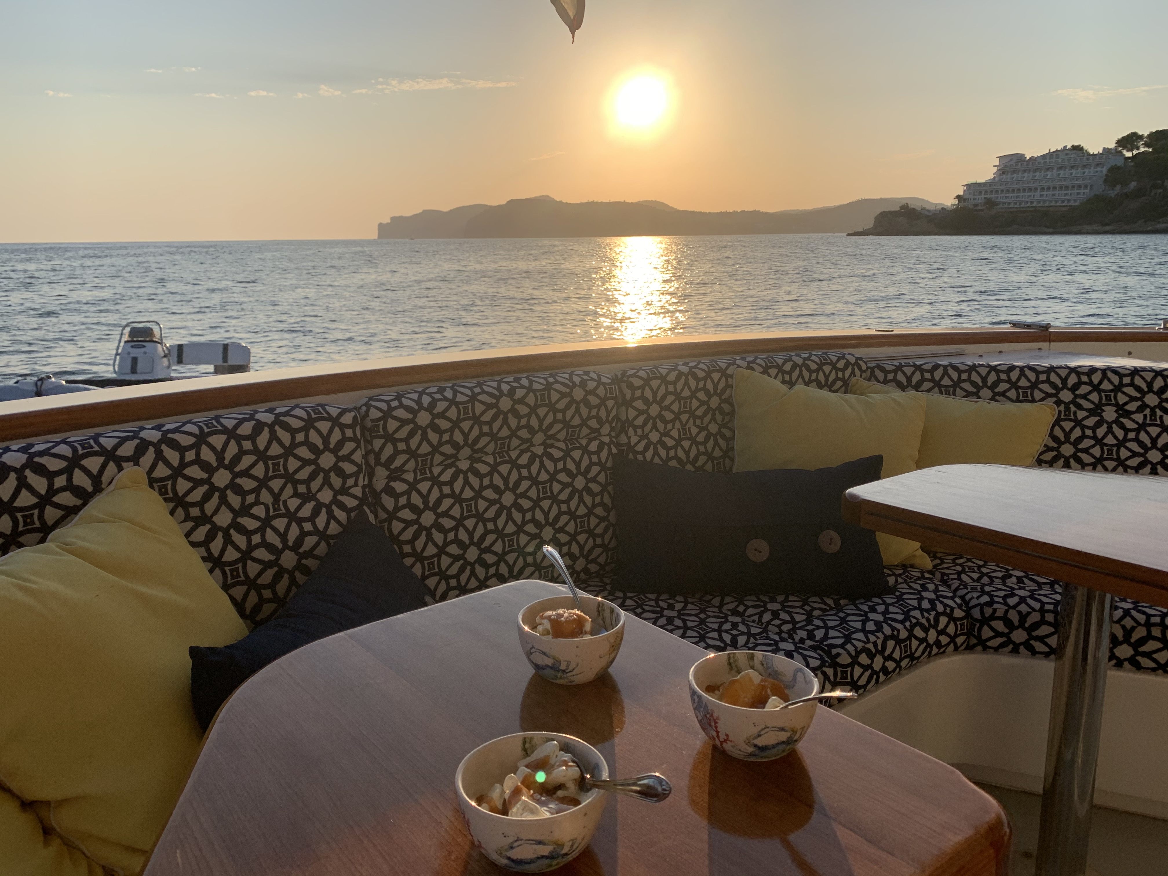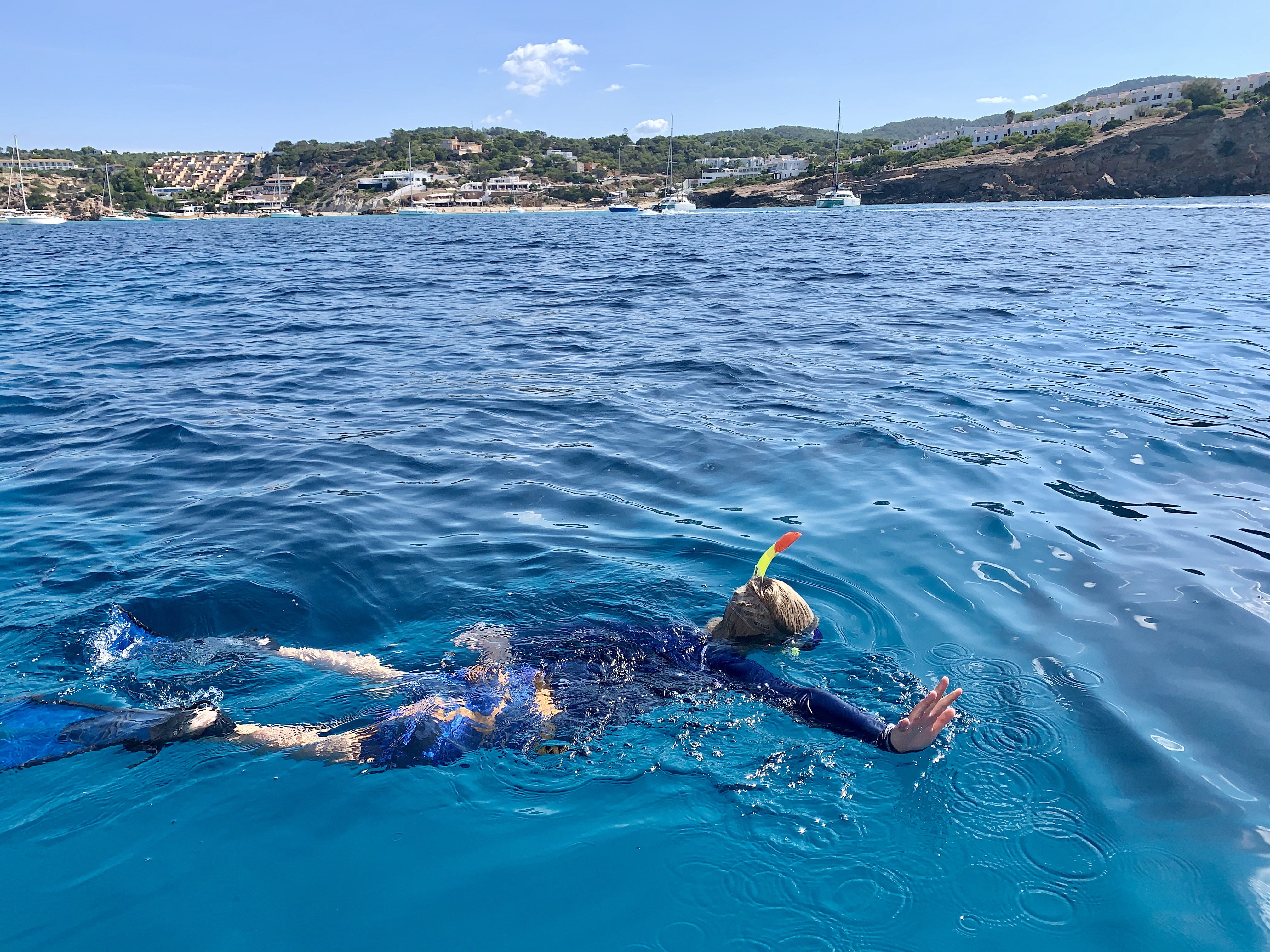 Our first stop on this Spanish island was Santa Ponca. According to Navily, the anchorage and port app we use, this anchorage was well protected based on the winds for the next few days. As it was also a short 7-8 hours cruise from Ibiza, it would be the perfect place to spend the night. Santa Ponca was perfectly idyllic, and we ended staying for nearly a week. The anchorage, like all of the anchorages we have thus explored in the Med, required the flopper stoppers as there was more surge than we have encountered elsewhere, but with the generous permission to leave our dinghy for the day – protected and tied up, it made for a wonderful first stop to explore by foot and by bus the surrounding area in the South West Coast of Mallorca. Santa Ponca was where King James 1 of Aragon took the island from the Arabs in 1229 after 300 years of Muslim rule, and this is commemorated by a monument which provides an interesting backdrop to the cliff from which teens jump into the harbor. Part of the municipality of Calvia, Santa Ponca is 18 Km from Palma, the capital of Mallorca, which can be accessed by frequent bus service. Another day was spent on a zipline obstacle course similar to the park that we enjoyed nearly weekly in Portugal. A bit of school took place – we studied the effects of evaporation in the Mediterranean Sea water, then used the newly acquired salt to make Mediterranean Sea Salt carmel which we drizzled on ice cream. I love school!!!