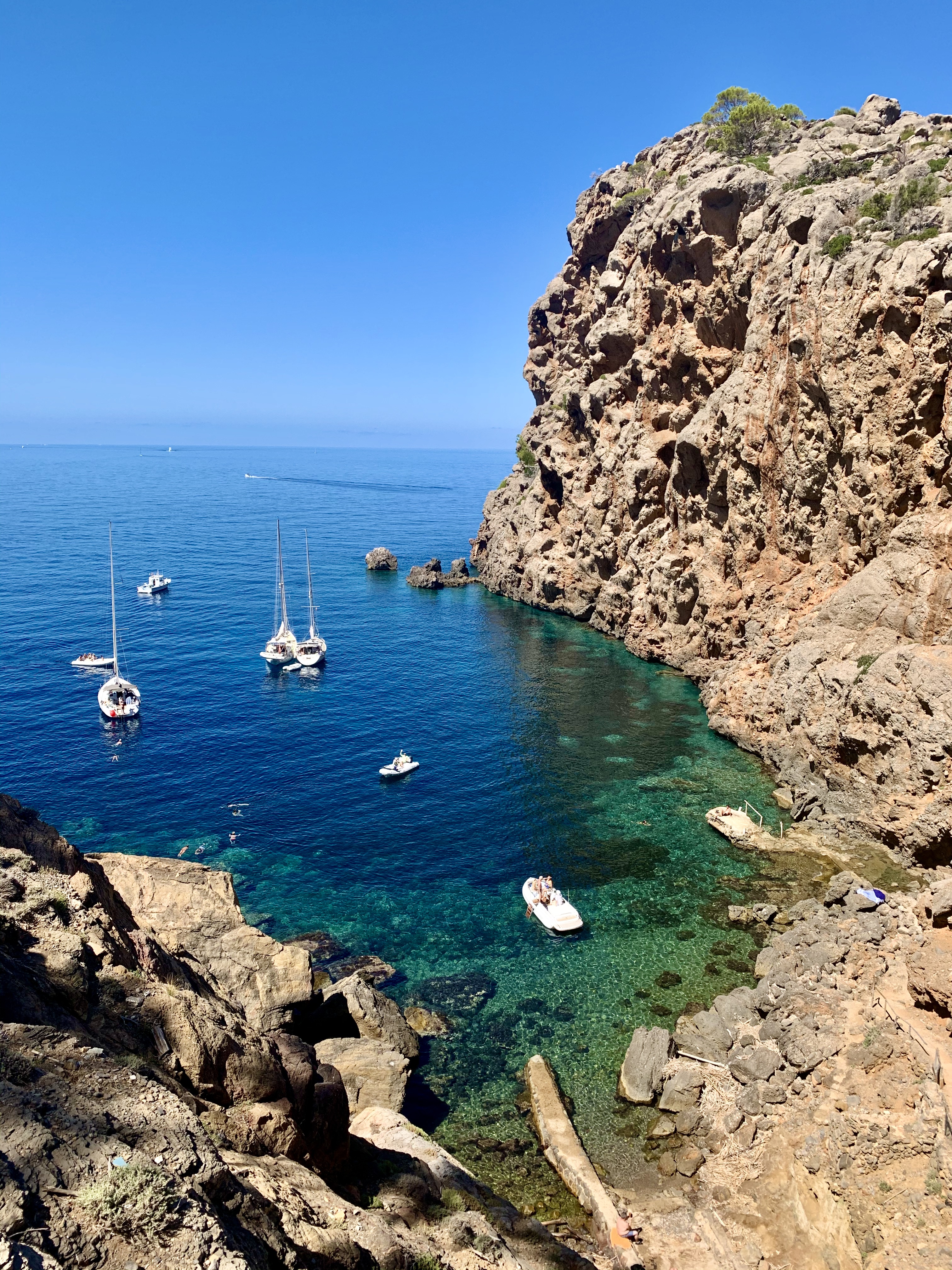 Have you ever returned from a vacation and felt like you needed a vacation? Sometimes as the on board “cruise director” I can sense that my crew is feeling that way, so I like to plan in some “lay days” at anchor where we aren’t spending a fortune to NOT take advantage of the town we are in. That was my plan for Calle de Formentor because the next island, Menorca, has evidence of the oldest civilizations in the Med and according to the Islas Baleares cruising guide, “Menorca has the greatest concentration of prehistoric remains IN THE ENTIRE MEDITERRANEAN”. So we may need to arrive refreshing and ready to learn to do the exploring that this island promises even though it is one of the smaller islands, it promises to keep us busy.