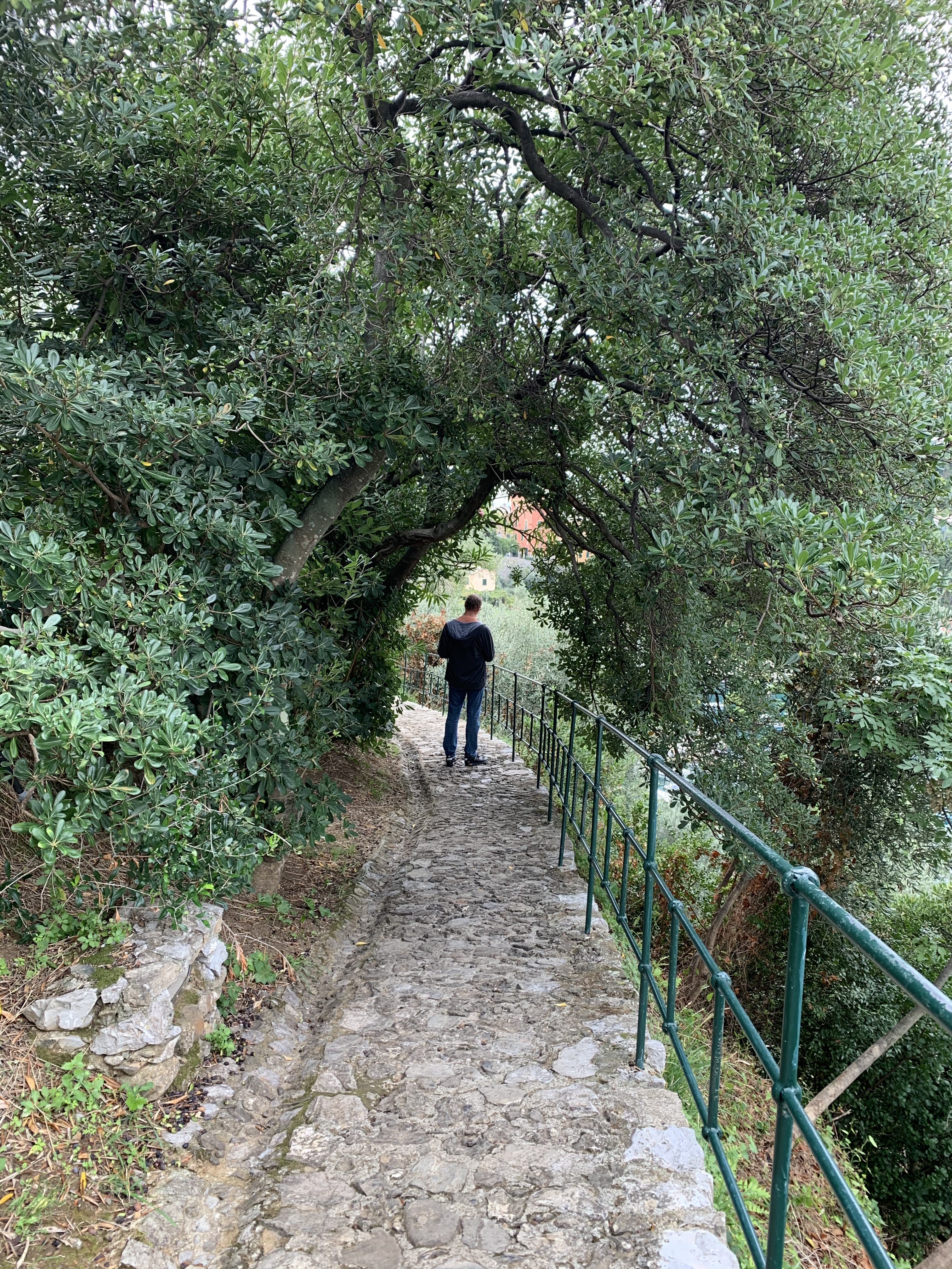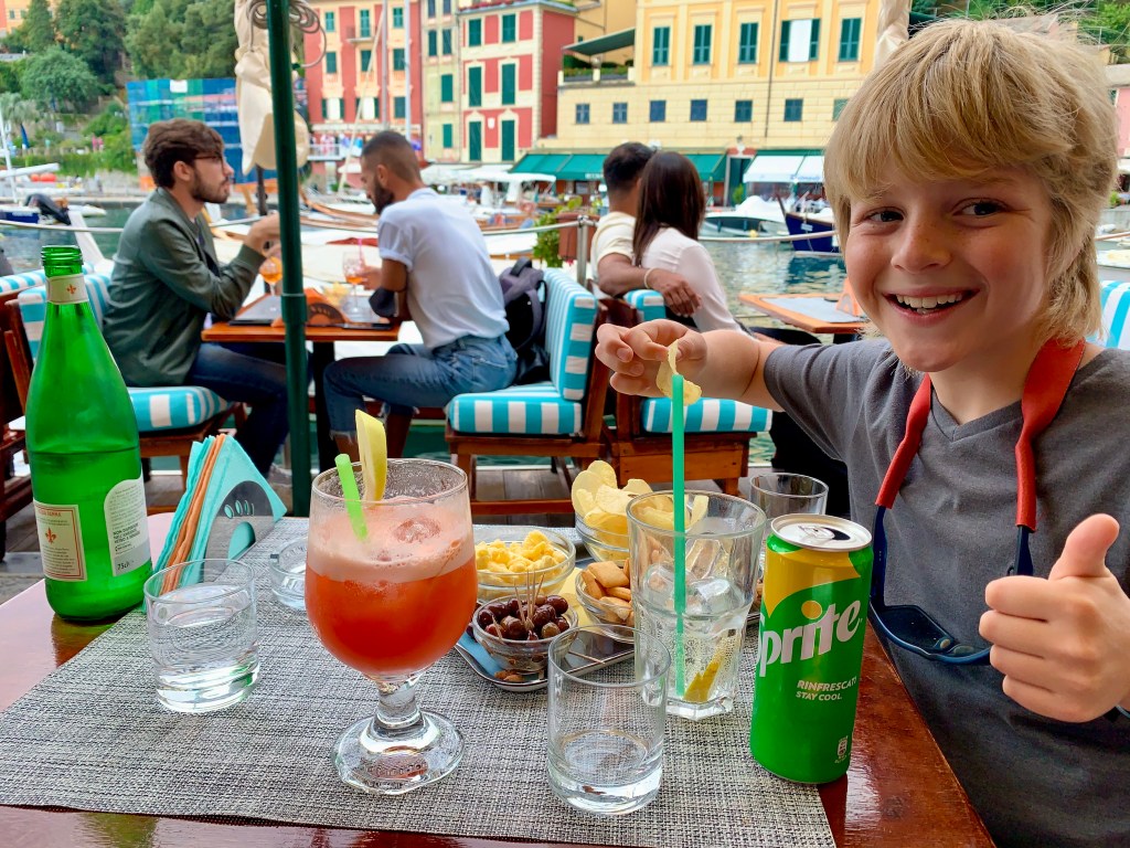 Aperitive in Italy is a delightful tradition of finding a piazza and having a little very low alcohol drink with some small snacks before dinner in the early evening. Alec and I don’t drink so we try to find non-alcoholic beer to accompany our snacks. While we have been very fortunate to find NA beer all over Europe – it is less widely available in the touristy areas. I think it can be said that we don’t love the touristy areas. The server in Portofino was bothered that we didn’t want alcohol and he brought us our non-alcoholic drinks very begrudgingly – and then charged us 45 Euro for the experience. All of this at a time when there were fewer than 20 people in the entire piazza and 5 in total at the restaurant. I would hate to see the service that a full town would bring. So, while we loved the beauty of Portofino, it is definitely a box that has been checked for us.