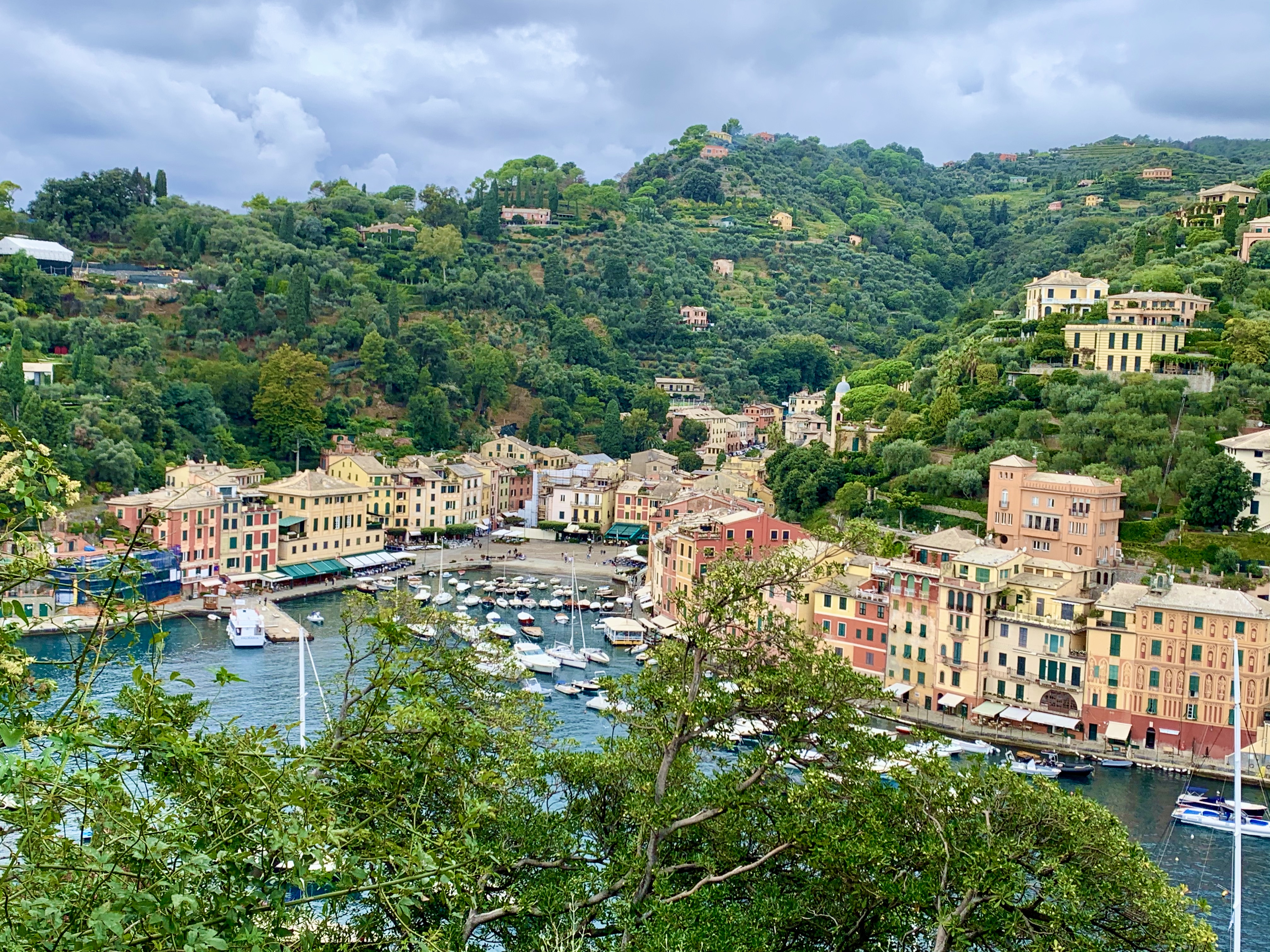 Leaving Rome, we took a 4.5 -hour train ride up the gorgeous Western coast of Italy to Portofino. We had only planned a few days here but extended so that we could take the train back down and explore Cinque Terre. Additionally, we had a day of total wash out – too windy or rainy to do anything at all. In Italy there is a color code system whereby if your town goes “red” you are instructed to stay home – streets closed. While we were in Portofino the color went “red” so we stayed in-doors. Not a bad idea when all of the “cittas” are connected by either train or boat.