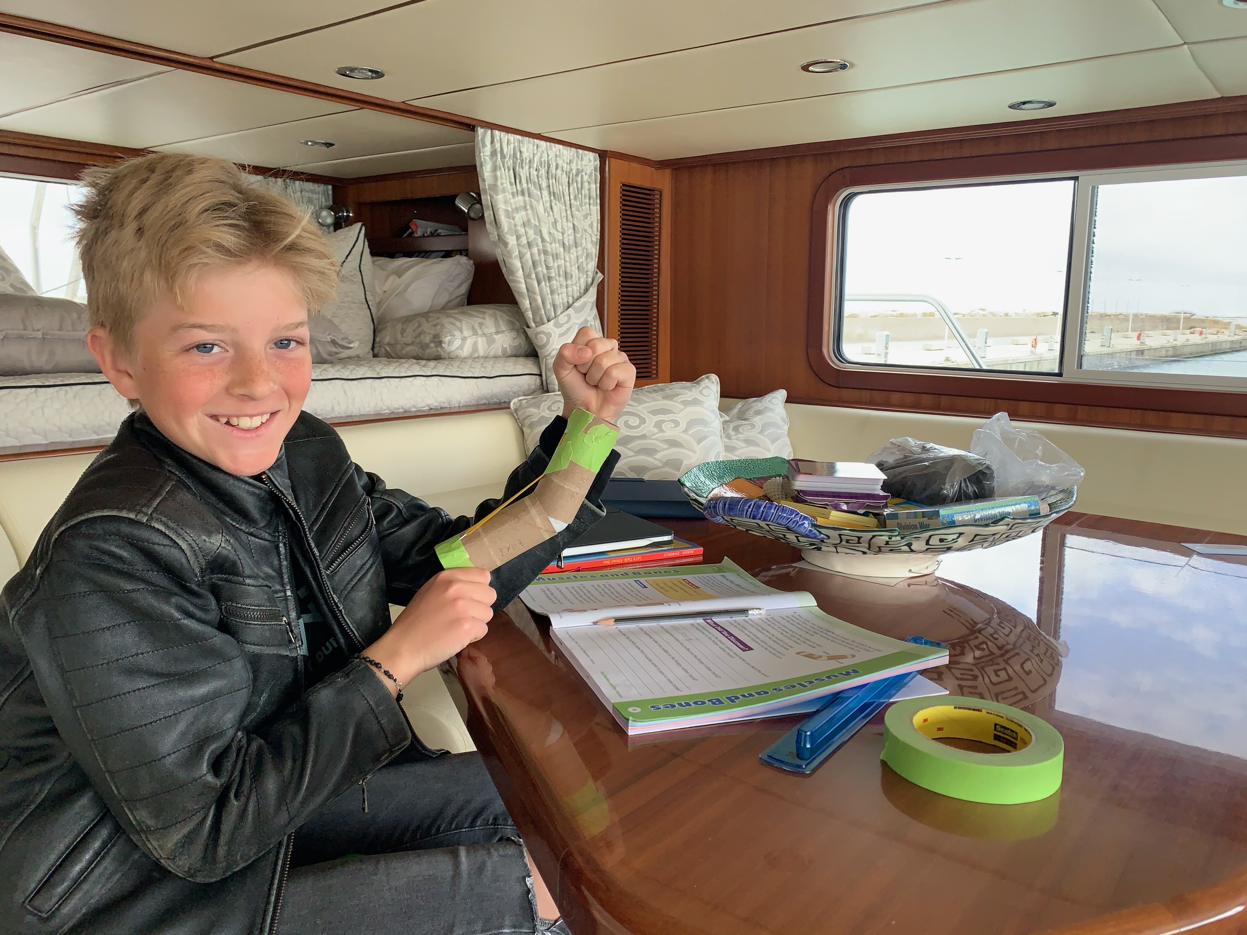 Our roles as parent, teacher, coach, mentor, as well as our roles of spouse, Captain, Mate, partner and chef have changed and sometimes several times. When we left Florida, I was the primary teacher, but Alec jumped in and helped as needed. During our first year with all of the “ups” and “downs” I hit a serious bump in the proverbial teaching road and Alec took over as primary teacher while I managed the admin side of things – deciding what would be taught and how to get it recorded to comply with Florida requirements.