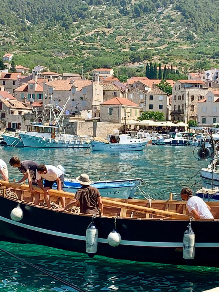 An interested thing to note is that 40% of the worlds charter boats are in Croatia. One quickly becomes interested in this important fact upon noticing that one day the anchorage is literally empty and the next full. The same thing happens in marinas. And the funniest observation we have made thus far is that by 1000 every single boat is gone from the marina but by the afternoon breezes kicking up around 1500, every slip is taken. There is no advance reservation system, only first come, first served. And watching this is like a ballet of (mostly) highly competent skippers and marineros cramming yachts in like sardines in a can, barely a fenders width between them. When we first arrived, we were delighted to see so much open dock space and even joked that we may be able to even American tie alongside. But before we even had our last line on, several boats arrived and many more joined so that the whole quay was occupied by the time we had rinsed the boat and showered for dinner. We made the same observation when we visited the town of Vis on the other side of the island, we sat having lunch with a completely empty quay and by the time we were served, we had the live entertainment of at least 10 arriving charter sailboats. By the time we returned to our side of the island in Komiza, the marina was full of a whole new crop of visitors. But they usually only come for the night, then they are off for another island visit first thing in the morning – and to get to the new