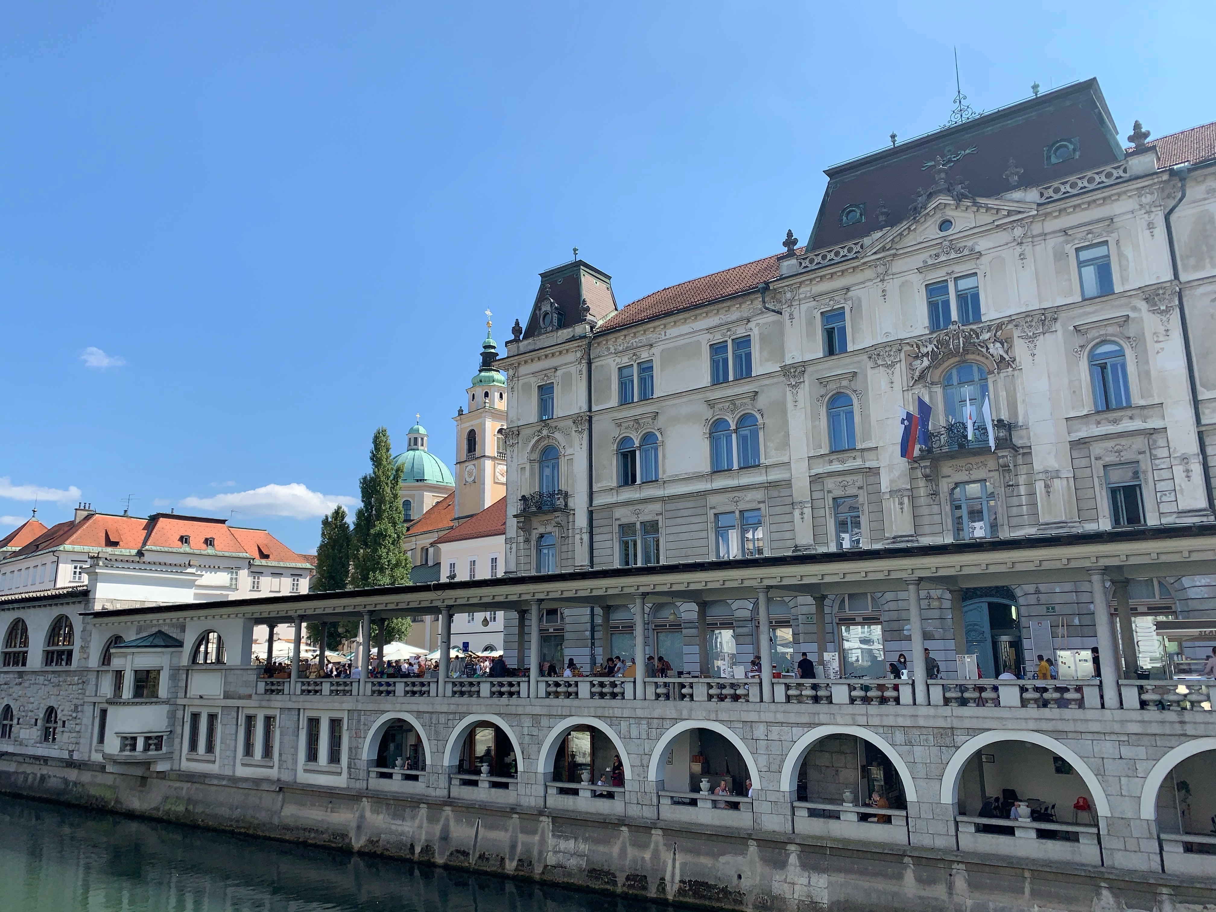 We took a shared ride to the capital of Slovenia, Ljubljana, 120 km. from Portoroz on day 2. The shared ride was not the best way to travel back and forth so if you are planning a trip, consider a bus or a cab to better improve your options. In fact, if we could do it over again, we would have rented a car and/or gotten a hotel room in Ljubljana for the night. It is the most charming town with a completely different feel from any other Mediterranean city we have visited. There was something Northern European about the feel of the city. Yet the architect, Joze Plecnik, who created so many buildings and bridges here, was said to have created it after Greece. Regardless, the effect was enchanting, and we all loved it.