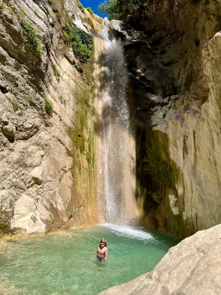 We celebrated Alecs birthday on the Island of Lefkada and after several days hanging on the hook here and meandering around the shops and restaurants, we cruised further South to Nydri where we viewed one of the natural wonders of Greece, the waterfalls pictured below.