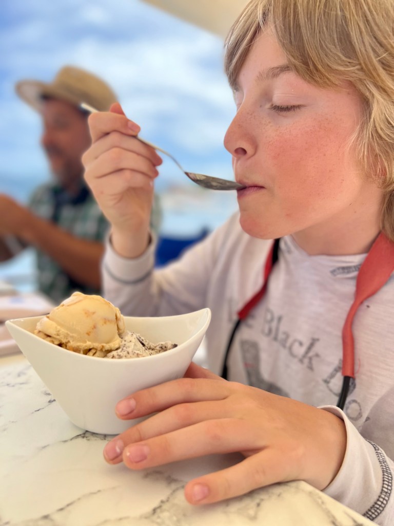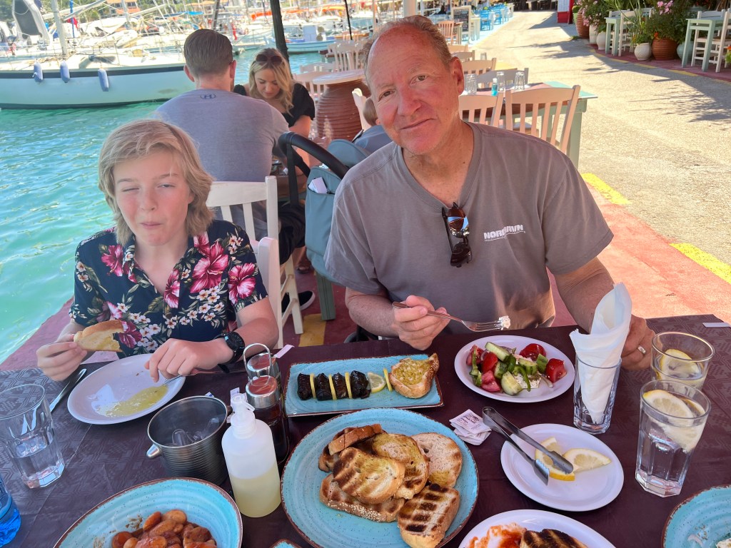 The anchorage on the north end of Paxos called Lakka is a lovely place to spend some time. There was hardly any swell and a very protected crescent shaped anchorage which gave us restful nights and stress-free days spent exploring the towns. BWA Yachting continues to provide our yacht agent services. You may remember that we discovered how amazing it is to travel stress-free when someone else is assuming legal responsibility for your status and paperwork requirements. When we checked into Greece in Corfu, we first made the acquaintance of Johnny with BWA who cleared us in, had our port documents stamped, delivered the garage full of Amazon products which we had sent to them to hold for our arrival (very hard to get products in Montenegro and we wanted to prepare for Jack and Alec’s birthday). When we discovered in Paxos that Jack had left behind one of his most prized possessions (his scooter and primary form of transportation), it was Johnny who facilitated its transport to Nidri on Lefkada and George in Nidri who arranged the reunion with Jack and his scooter and made restaurant recommendations for Alec’s birthday. He also forwarded items which were promised in April to our next port. The Paxos agent handled our paperwork, delivered books I had ordered for Jack, and even graciously provided us a car for our use for the day. In Cephalonia, the BWA agent Sofia drove from the other side of the island to deliver a package which I had sent to Athens for our arrival there. In absolutely no hurry to have the package, the agent thought we may need it, so it was transported to us via a fairly long drive from Argostoli to Sami. And finally in Kalamata, Andriani collected our transit log to have stamped in and out, made our marina reservations, recommended an exceptional olive oil tour (more on that later) and got us an air conditioning mechanic through other sources which we could not have found on our own. We continue to marvel at the level of service offered by BWA and we remain incredibly grateful for their knowledge and experience. To say that it is well worth the cost is, for us, an understatement. We are en route to Milos and we have already been “handed off” to the BWA agent there who will continue to look after us. BWA has taken so much of the stress and unpleasantness out of the regulatory aspects of cruising and made it so easy, anyone can do it!