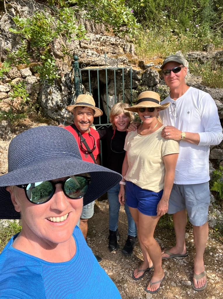 Lovers of Greek Mythology and Literature will appreciate the stop we made in Ithaca. Believed by some scholars to be the home to King Odysseus in the famous Homers’ The Iliad and Odyssey, walking in the footsteps of such iconic history has been thrilling. We went for a bit of an explore to the remains of what is believed to be his palace from 2800 years ago. It is astounding to me that structures remain, in whatever form they persist – especially given the unstable nature of the region with catastrophic earthquakes happening with some regularity in the past nearly 3000 years. Still, we had a wander around the olive groves and crawled all over stones placed 3 millennia ago. We also went to the cave of the Nymphs.