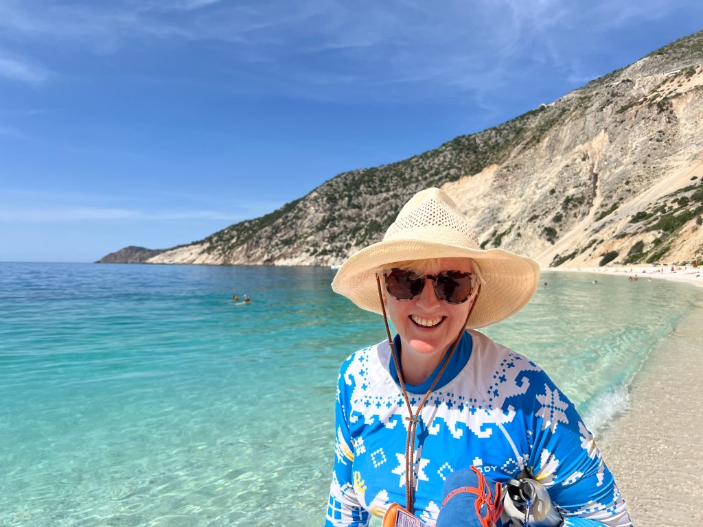 We continued to eat (and eat) the glorious food of the region, and we drove all over the island stopping at the charming seaside villages of Fiscardo and Assos. Just 2 km from the town of Sami, we discovered the Melissani (the Cave of the Nymphs). Located in a landlocked lake and being tended by men in oar boats, the cave is up to 39 meters deep in places and has stalactites dating back 20,000 years. And I thought a 3,000-year-old structure was amazing! Listed in the guidebook as one of the greatest natural wonders of Greece, we were shocked that it wasn’t mentioned on the UNESCO heritage list. Excavations in this cave have uncovered evidence of 3rd and 4th century BC worshippers of the god Pan. Leaving behind the Cave of the Nymphs, we traveled on to the Drogarati Cave. 3 km from Sami and 120 m above sea level, the cave descends to a depth of 95 meters. The literature provided states that it is considered the finest cave in Greece, but I would go much further than that. Completely full of Stalactites and Stalagmites, and home to bats who feed on the mosquitos due to the damp environment, it was the most extraordinary and enchanting caves we have ever seen. We could easily have spent another whole week on the lovely island of Cephalonia, but after a day spent at the beach; where snorkeling Steve and Jack discovered a lovely octopus who treated us all to a view, it was time to continue.