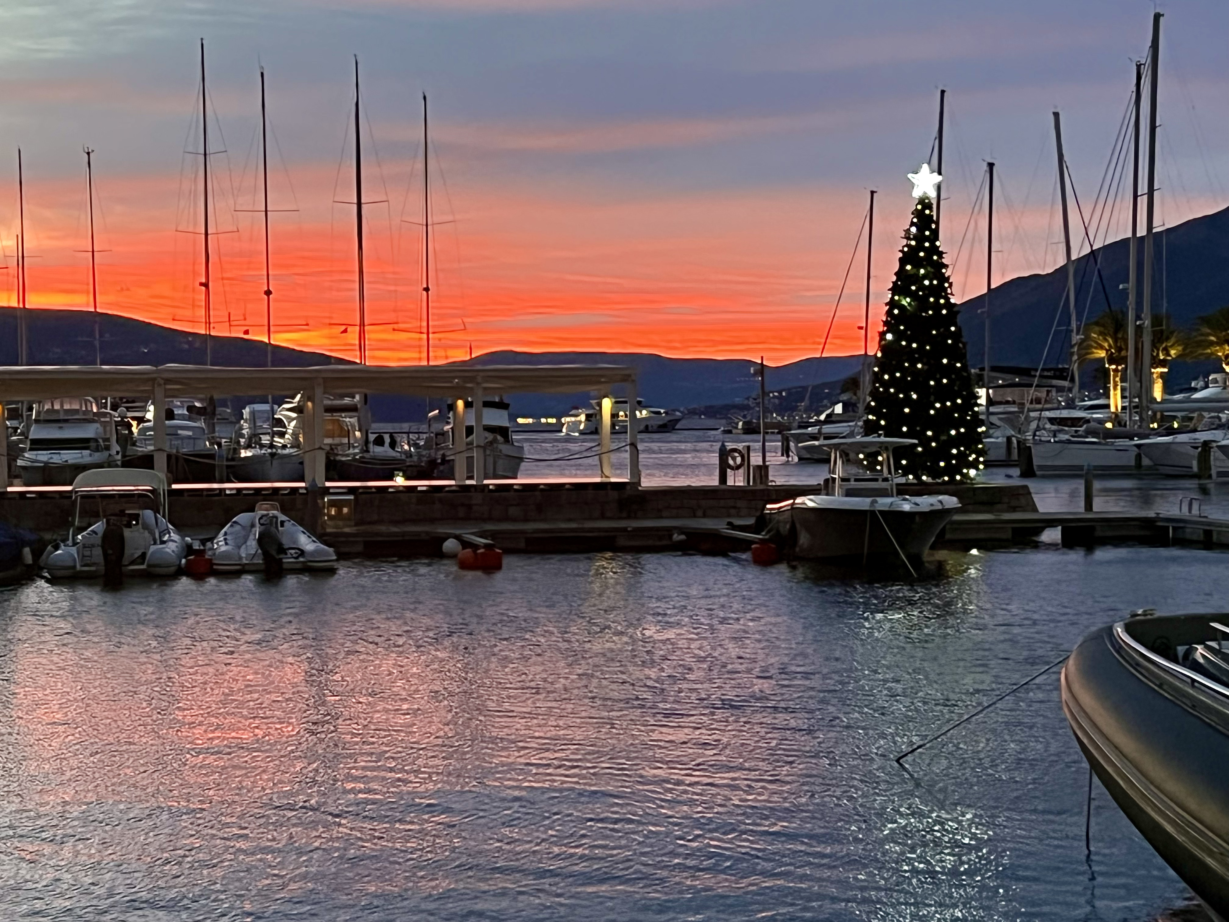 In Porto Montenegro Marina there are 2 small grocery stores but another slightly larger grocery store approx. 5 km away. There is development happening which promises a larger grocery store, more shops and even a cinema but that is 2 years away. For now, the shops which are here are very high end with most boaters like us taking a pass. The restaurants, however, are another matter and we love nearly all of them. Within a very short (5-10 minutes’ walk) one can find pizza as delicious as what we enjoyed in Italy, a good steak, a Mexican kind of fusion restaurant, lots of local places and tons of bakeries. We have been having an amazing time enjoying eating out and socializing in a way we were unable to do last year in lockdown in Sicily. As residents we are permitted vaccines when we are due to have them, and we are very kindly received in the medical facility. We have taken Pratt to the vet for some weird behavior (thank God he is just fine) and the exam and blood tests cost 50 Euro. We have had our own blood taken and tested and it cost 18.00 Euro. This in contrast to the several hundred dollars we spent getting our blood tested in the US. I’m due to have a mammogram this year and a regular checkup is behind schedule so Ill update the blog when I’m able to accomplish this, but I have begun asking around and heard that it is a simple and inexpensive matter to take care of. Which is to say, if you are considering wintering here, I have found no reason thus far to indicate you should not. We have loved our time here immensely. On a slightly more indulgent note, there are a few spas very nearby and each priced reasonably. Also, there are people easy to come by who will wash the inside or outside of your boat and watch and maintain your boat while you are absent. The prices for these services vary so best to inquire before you book. So that is all for now! Wishing all of you a very Happy New Year!!